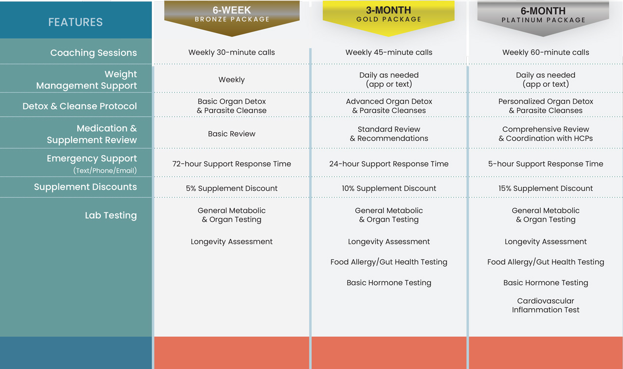 Regular and ongoing calls and emails are key to focused tracking and achievement of results. Monitoring labs and key medical indicators will track success over time, avoiding progression of symptoms causing chronic diseases.